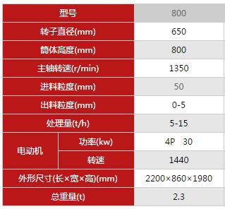 800型復(fù)合式破碎機(jī)參數(shù):